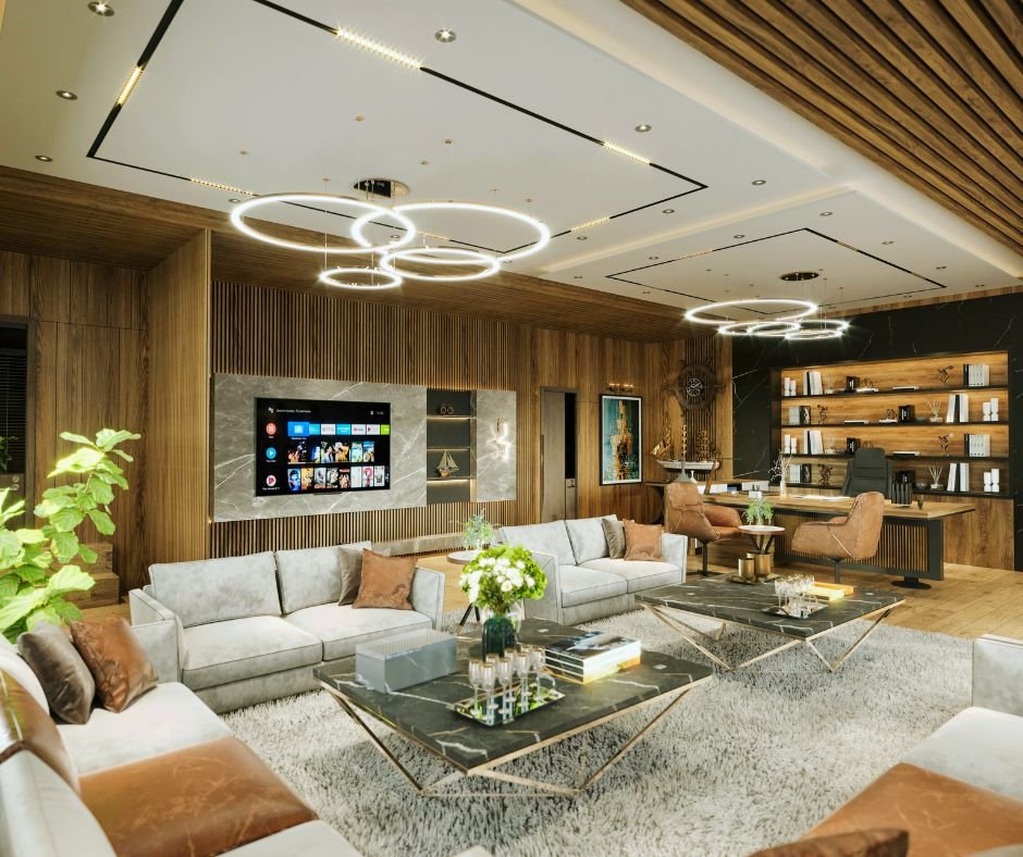 دراسة وتوزيع الإضاءة بشكل هندسي يبرز جمال التصميم والأثاث.